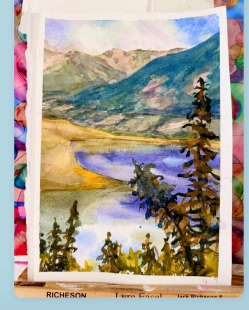 Lori Baugh Littlejohns lives, works, plays and paints in Invermere, British Columbia. She has painted for over 20 years and has been blessed with many mentors, especially the incomparable watercolorist Donna Jo Massie from Canmore, Alberta. Lori paints in oil from spring to fall and turns to watercolors in the winter. Mountains almost always figure prominently. She is a lifelong learner and has recently explored painting with pastels and sculpting with driftwood. Lori has sold her paintings through art events in the Columbia Valley such as Tour of the Arts. Currently, she is semi-retired and is a CV Arts volunteer. Lori combines her work experience in facilitating learning in groups, with her love and enjoyment of painting to lead workshops as fundraisers for CV Arts.